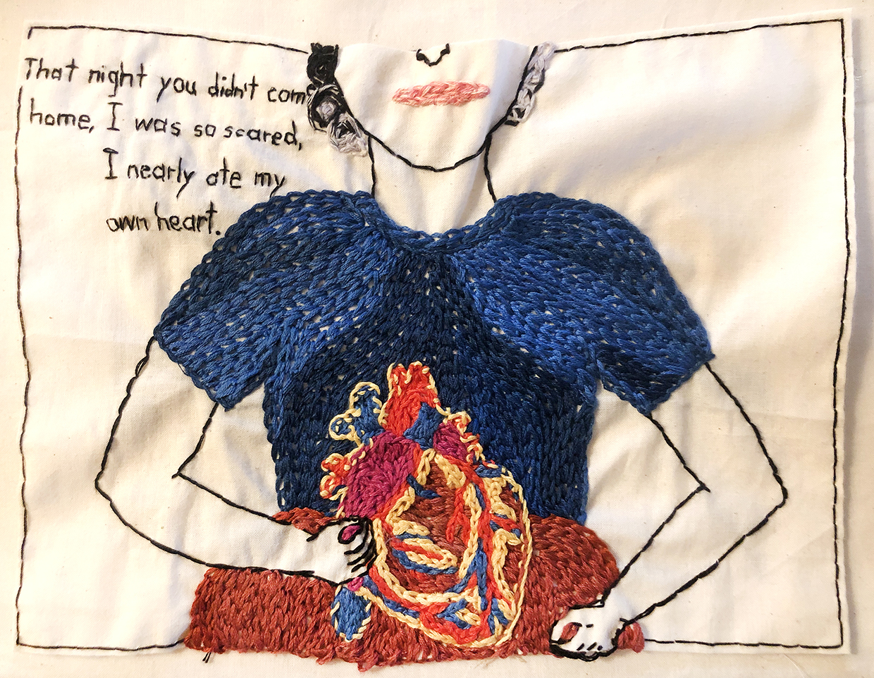 Eat my heart. 2021. Embroidery on fabric. 8 x 10.5 inches. Pin It