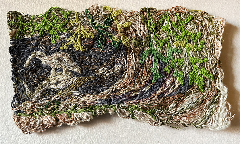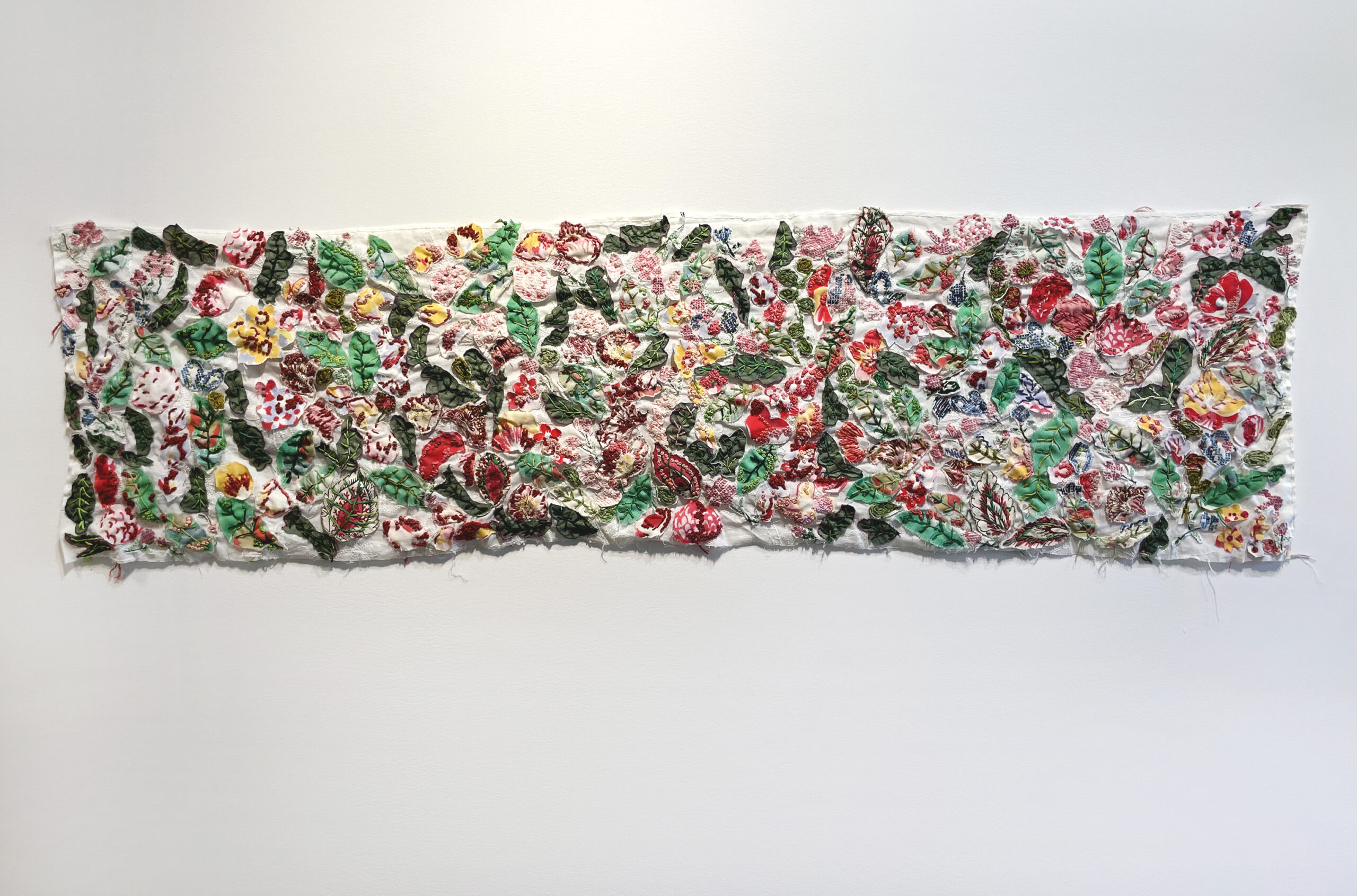Textile Garden. 2021. Appliqué and embroidery on fabric. 12.5 x 46.5 inches. Pictured installed in Continuum Fine Art and Photography, Greenwood Lake, NY 2-person exhibit with Melanie Fischer Pin It