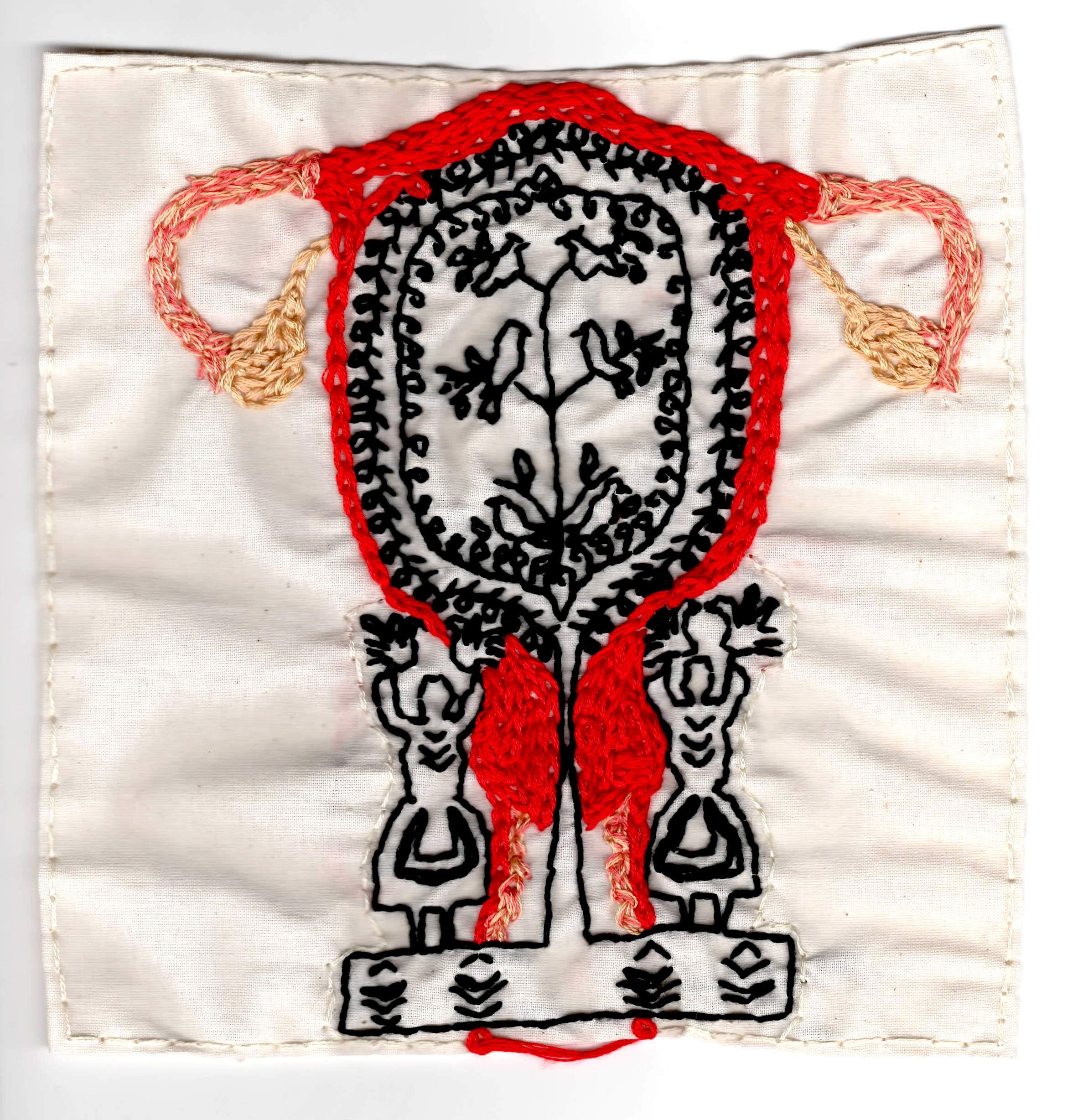Women birth whole communities (so keep your laws off our uteruses). 2022. Embroidery on fabric. 7.5 x 7.25 inches. In a private collection. Pin It