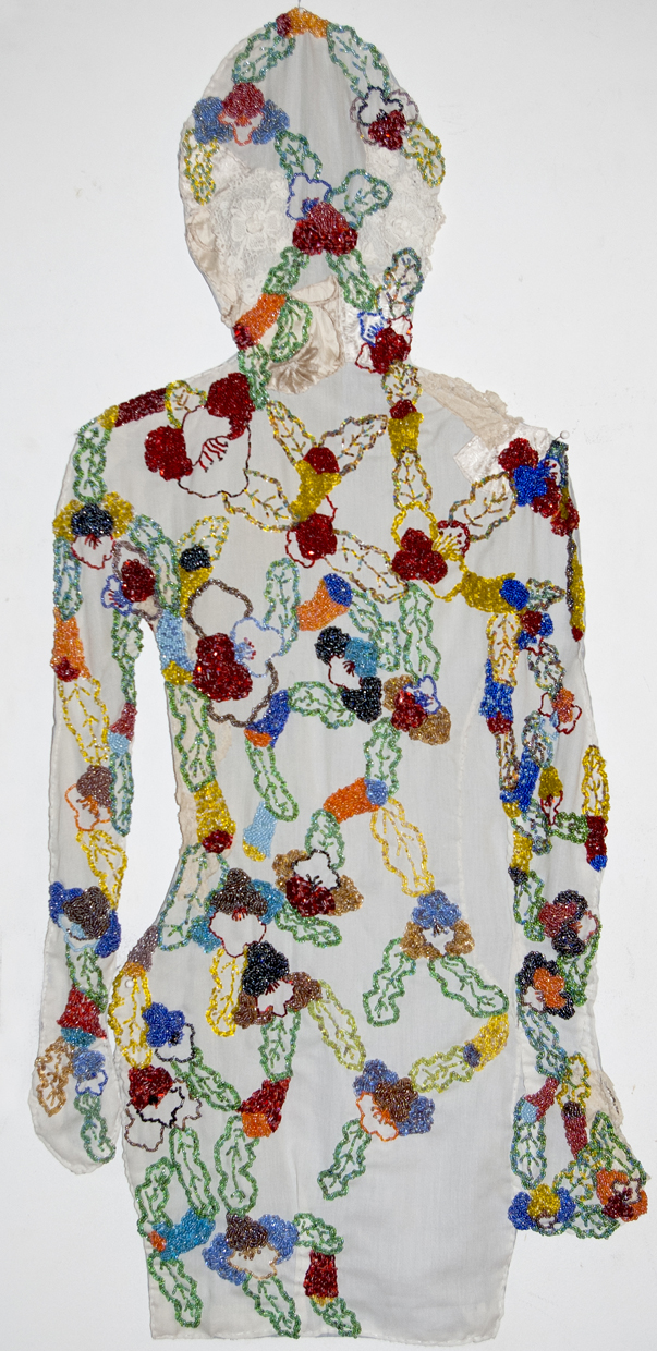 (Self) Portrait as My Grandmother. 2017. Beads, appliqué, stitching on fabric. Based on my own form. ~40 x 20 inches.