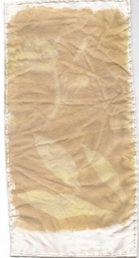 Medicinal anthotype. 2025. Anthotype (plant-based photograph) with pomegranate peel emulsion on silk of indigo leaves and wormwood leaves.